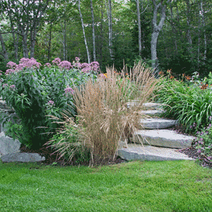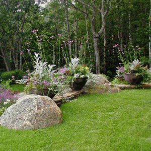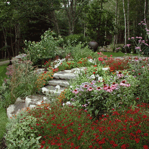 Plants define the character of a place with structure, color, and texture. Whether providing support for an eroding bank or decorating a terrace, they must reflect the requirements of both the site and the client. Gardens can be designed around a time of day - breakfast, for example, or the cocktail hour. Woodland plantings can be as striking as a formal perennial border. What could be lovelier than a mass of white bleeding heart at the edge of a clearing or oriental lilies sparkling in a mass of ferns...?